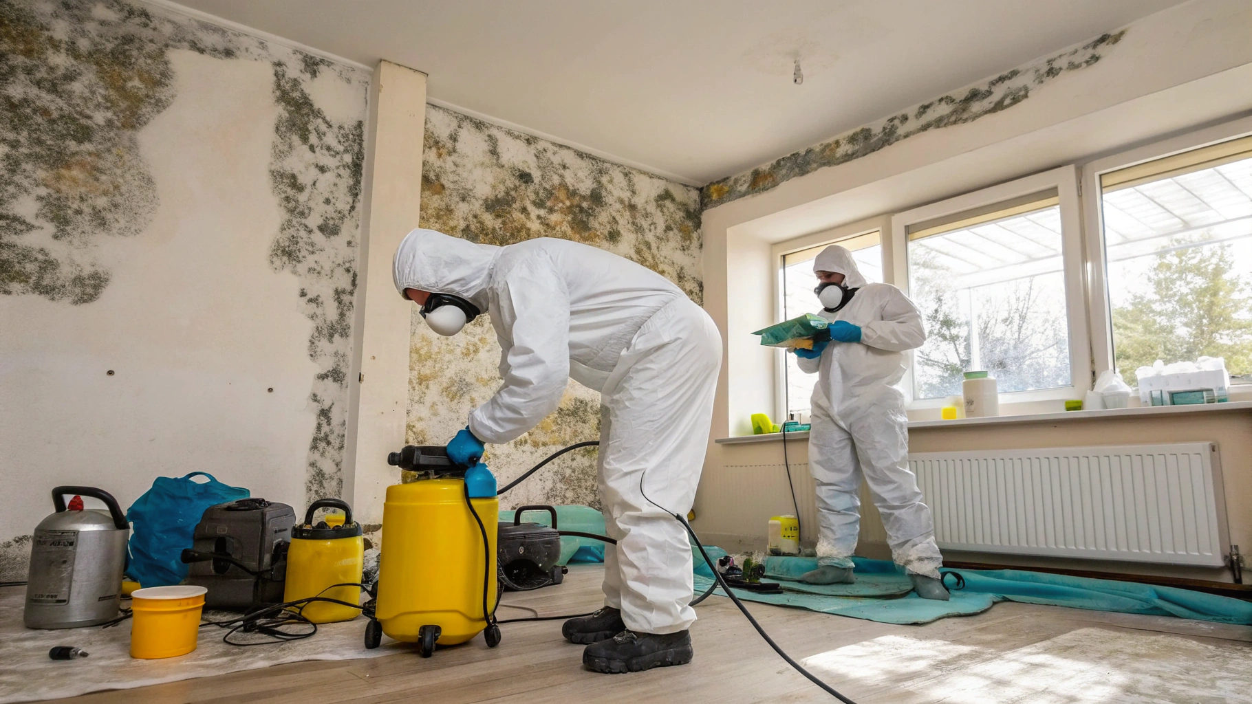 High-efficiency particulate air filtration captures microscopic spores during the remediation process.